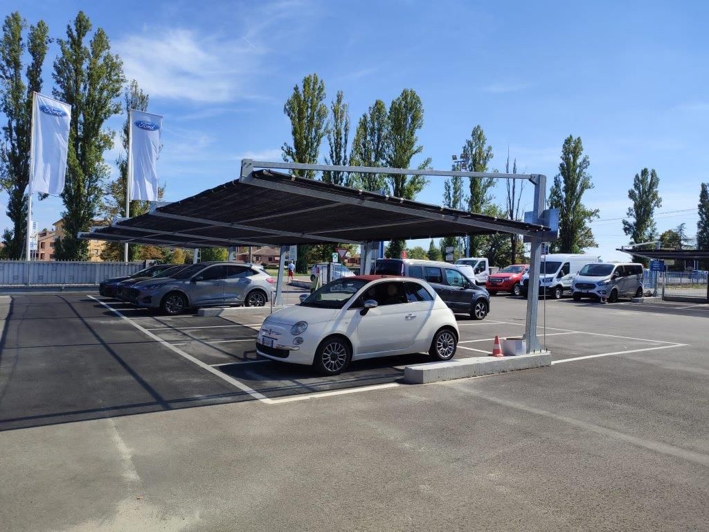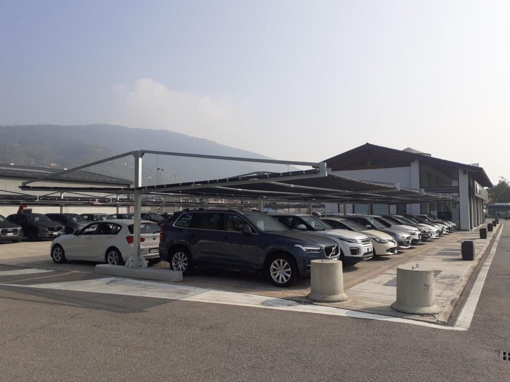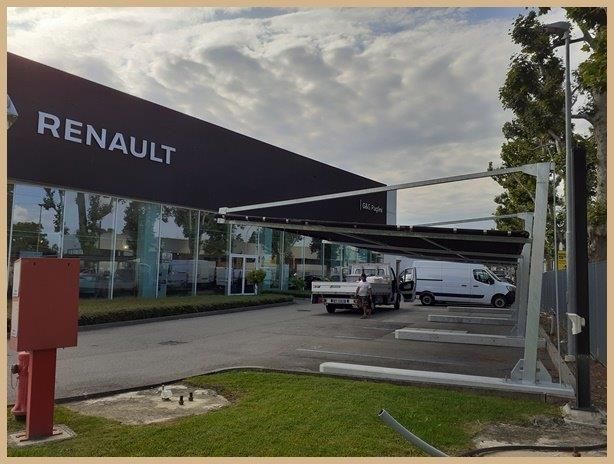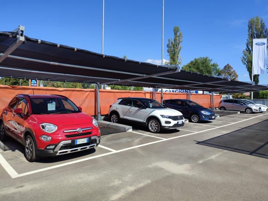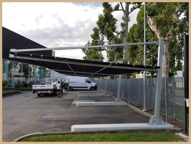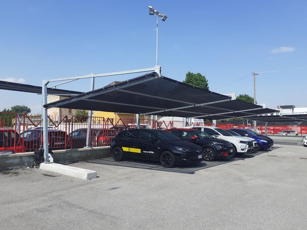 Questa tipo di struttura ha tutti i piantoni arretrati a sbalzo ed è l’ideale per un parcheggio automezzi o stoccaggio merci.